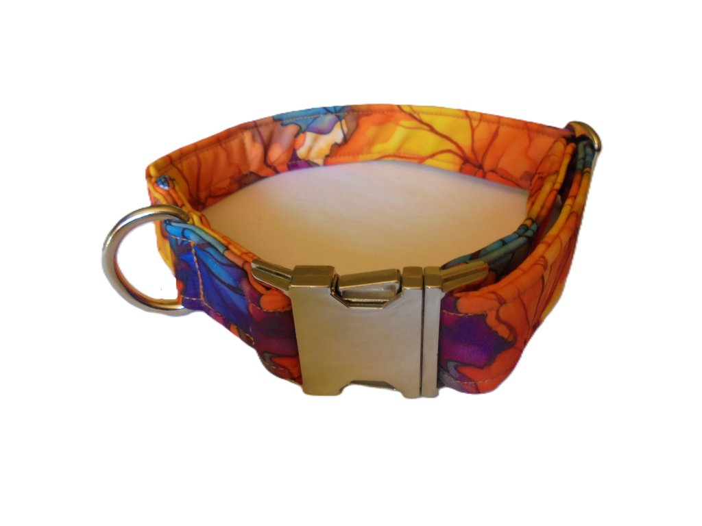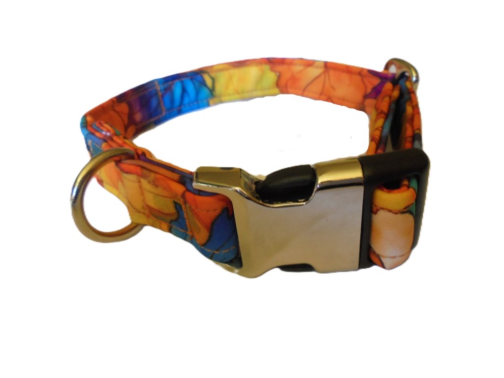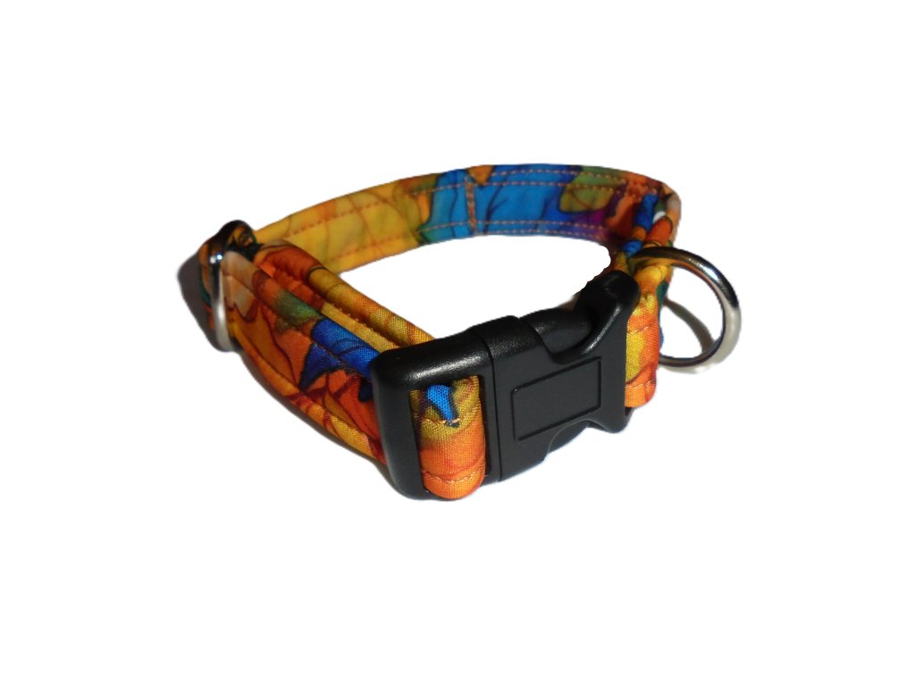 Softshellový obojek pro Vašeho pejska s krásným motivem barevného podzimního listí v tónech oranžové, žluté a modré. Zapínání na trojzubec, anebo polostahovací bez zapínání, pro psy, kteří se z obojku vyvlíkají. Různé šíře i délky si vyberete ve variantách. Doporučuji k obojku dokoupit ještě vodítko ve stejném designu.